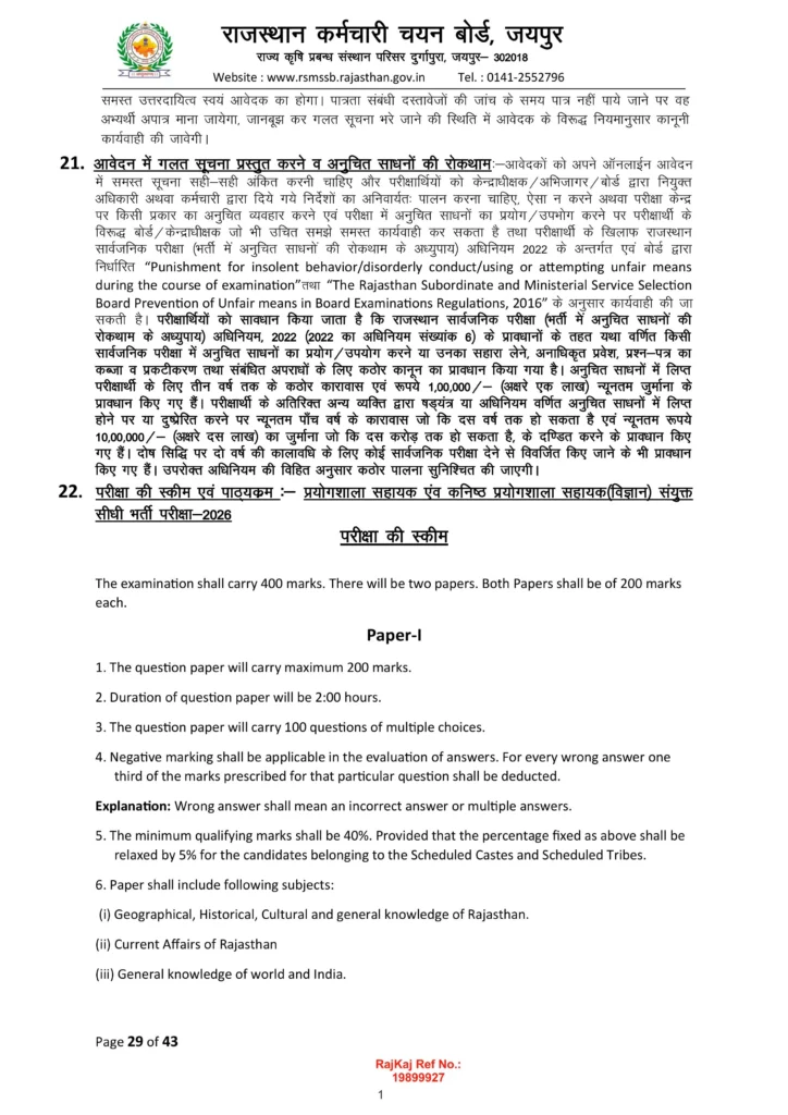 - Rajasthan Lab Assistant Exam Pattern 2026